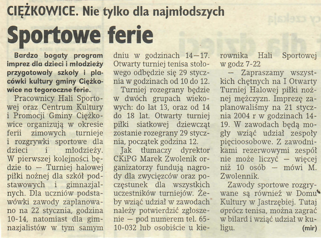 15 stycznia 200421 stycznia 2004 21 stycznia 2004 Sportowe ferie, Gazeta Krakowska ( Tarnowska ), Nr.17, Str. 4, 21.01.2004 r. Udostępnij0 Powiązane wpisy20 stycznia 2024Czytaj dalej2 sierpnia 2023Czytaj dalej2 sierpnia 2023Czytaj dalej21 lipca 2023Czytaj dalej21 maja 2022Czytaj dalej Dodaj komentarz Anuluj pisanie odpowiedziTwój adres e-mail nie zostanie opublikowany. Wymagane pola są oznaczone *Komentarz * Nazwa * Adres e-mail * Witryna internetowa Zapamiętaj moje dane w tej przeglądarce podczas pisania kolejnych komentarzy. Δ