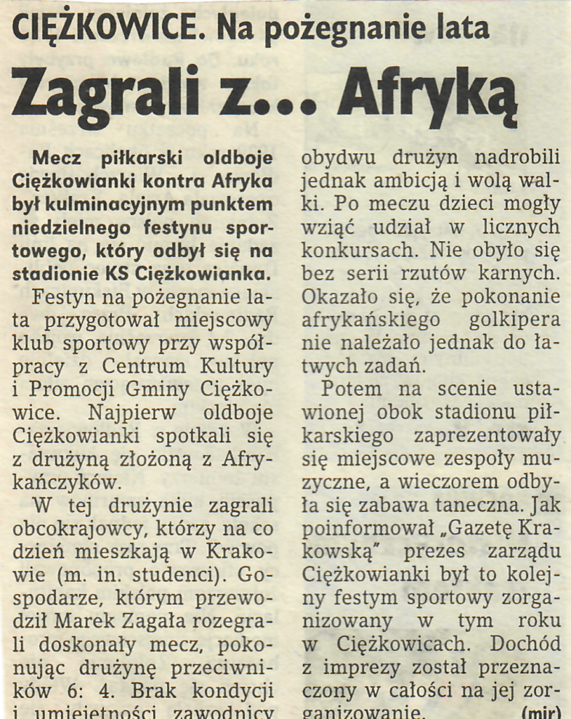 8 września 200310 września 2003 9 września 2003 Zagrali z … Afryką, Gazeta Krakowska ( Tarnowska ), Nr. 210, Str.2, 09.09.2003 r. Udostępnij0 Powiązane wpisy20 stycznia 2024Czytaj dalej2 sierpnia 2023Czytaj dalej2 sierpnia 2023Czytaj dalej21 lipca 2023Czytaj dalej21 maja 2022Czytaj dalej Dodaj komentarz Anuluj pisanie odpowiedziTwój adres e-mail nie zostanie opublikowany. Wymagane pola są oznaczone *Komentarz * Nazwa * Adres e-mail * Witryna internetowa Zapamiętaj moje dane w tej przeglądarce podczas pisania kolejnych komentarzy. Δ