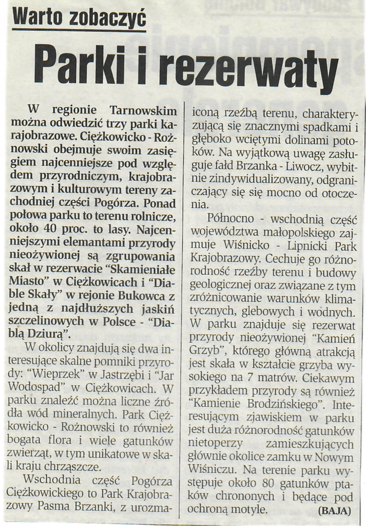 30 lipca 200311 sierpnia 2003 4 sierpnia 2003 Parki i rezerwaty, Dziennik Polski ( Tarnowski ), Nr. 180, Str.3, 04.08.2003 r. Udostępnij0 Powiązane wpisy20 stycznia 2024Czytaj dalej2 sierpnia 2023Czytaj dalej2 sierpnia 2023Czytaj dalej21 lipca 2023Czytaj dalej21 maja 2022Czytaj dalej Dodaj komentarz Anuluj pisanie odpowiedziTwój adres e-mail nie zostanie opublikowany. Wymagane pola są oznaczone *Komentarz * Nazwa * Adres e-mail * Witryna internetowa Zapamiętaj moje dane w tej przeglądarce podczas pisania kolejnych komentarzy. Δ