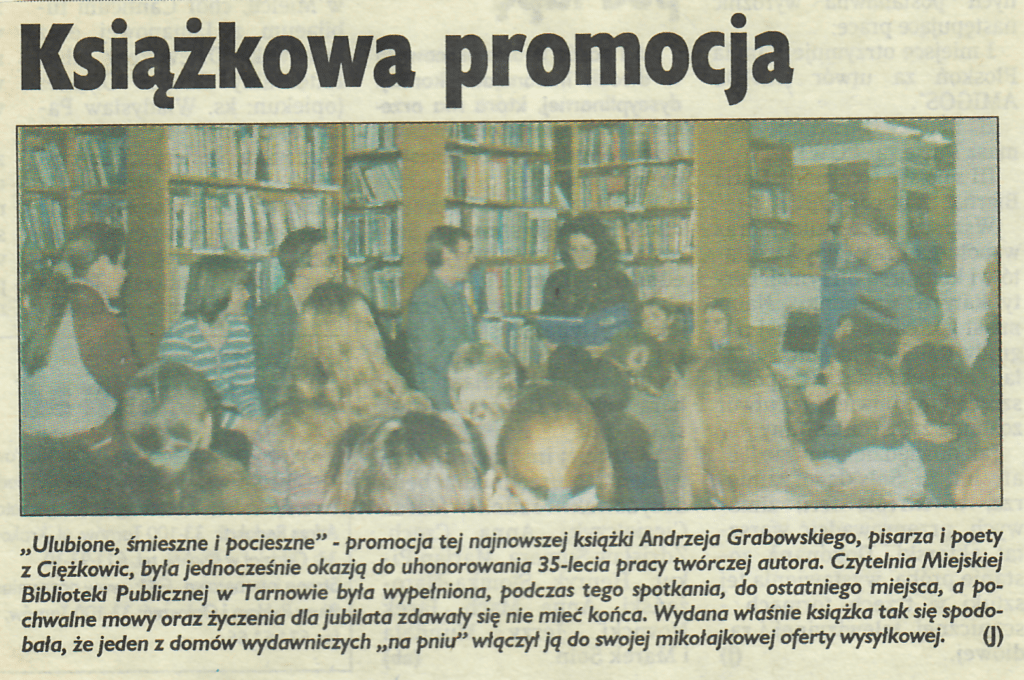 20 grudnia 200223 grudnia 2002 21 grudnia 2002 Książkowa promocja, Gazeta Krakowska ( Tarnowska ), Nr. 297, Str. 1, 21-22.12.2002 r. Udostępnij0 Powiązane wpisy20 stycznia 2024Czytaj dalej2 sierpnia 2023Czytaj dalej2 sierpnia 2023Czytaj dalej21 lipca 2023Czytaj dalej21 maja 2022Czytaj dalej Dodaj komentarz Anuluj pisanie odpowiedziTwój adres e-mail nie zostanie opublikowany. Wymagane pola są oznaczone *Komentarz * Nazwa * Adres e-mail * Witryna internetowa Zapamiętaj moje dane w tej przeglądarce podczas pisania kolejnych komentarzy. Δ