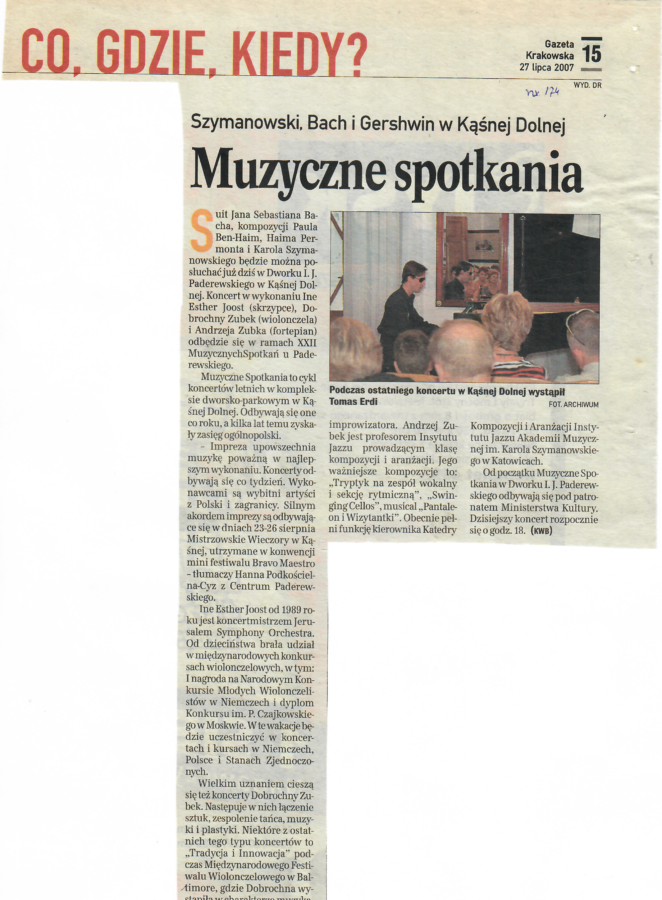24 lipca 20071 sierpnia 2007 27 lipca 2007 Muzyczne spotkania, Gazeta Krakowska , Nr. 174, Str.15, 27.07.2007 r. Udostępnij0 Powiązane wpisy20 stycznia 2024Czytaj dalej2 sierpnia 2023Czytaj dalej2 sierpnia 2023Czytaj dalej21 lipca 2023Czytaj dalej21 maja 2022Czytaj dalej Dodaj komentarz Anuluj pisanie odpowiedziTwój adres e-mail nie zostanie opublikowany. Wymagane pola są oznaczone *Komentarz * Nazwa * Adres e-mail * Witryna internetowa Zapamiętaj moje dane w tej przeglądarce podczas pisania kolejnych komentarzy. Δ