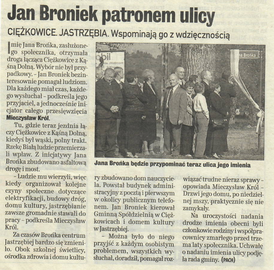 Jan Broniek patronem ulicy,