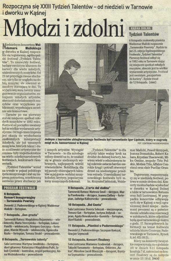 3 listopada 20055 listopada 2005 4 listopada 2005 Młodzi i zdolni, Gazeta Krakowska , Nr. 257, 04.11.2005 r. Udostępnij0 Powiązane wpisy20 stycznia 2024Czytaj dalej2 sierpnia 2023Czytaj dalej2 sierpnia 2023Czytaj dalej21 lipca 2023Czytaj dalej21 maja 2022Czytaj dalej Dodaj komentarz Anuluj pisanie odpowiedziTwój adres e-mail nie zostanie opublikowany. Wymagane pola są oznaczone *Komentarz * Nazwa * Adres e-mail * Witryna internetowa Zapamiętaj moje dane w tej przeglądarce podczas pisania kolejnych komentarzy. Δ