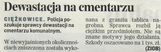 6 kwietnia 200921 kwietnia 2009 18 kwietnia 2009 Dewastacja na cmentarzu, Dziennik Polski, Str. B3, 18-19.04.2009 r. Udostępnij0 Powiązane wpisy20 stycznia 2024Czytaj dalej2 sierpnia 2023Czytaj dalej2 sierpnia 2023Czytaj dalej21 lipca 2023Czytaj dalej21 maja 2022Czytaj dalej Dodaj komentarz Anuluj pisanie odpowiedziTwój adres e-mail nie zostanie opublikowany. Wymagane pola są oznaczone *Komentarz * Nazwa * Adres e-mail * Witryna internetowa Zapamiętaj moje dane w tej przeglądarce podczas pisania kolejnych komentarzy. Δ