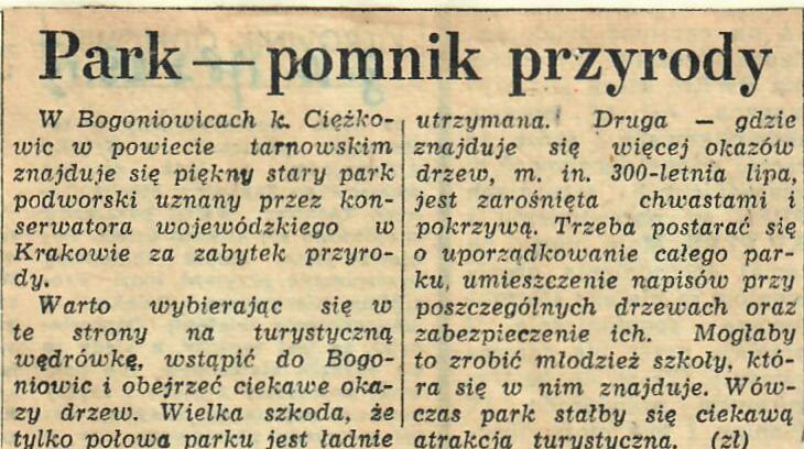 25 lipca 197029 lipca 1970 29 lipca 1970 Park- pomnik przyrody Gazeta Krakowska, Nr.178, 29.07.1970 r. Udostępnij0 Powiązane wpisy20 stycznia 2024Czytaj dalej2 sierpnia 2023Czytaj dalej2 sierpnia 2023Czytaj dalej21 lipca 2023Czytaj dalej21 maja 2022Czytaj dalej Dodaj komentarz Anuluj pisanie odpowiedziTwój adres e-mail nie zostanie opublikowany. Wymagane pola są oznaczone *Komentarz * Nazwa * Adres e-mail * Witryna internetowa Zapamiętaj moje dane w tej przeglądarce podczas pisania kolejnych komentarzy. Δ