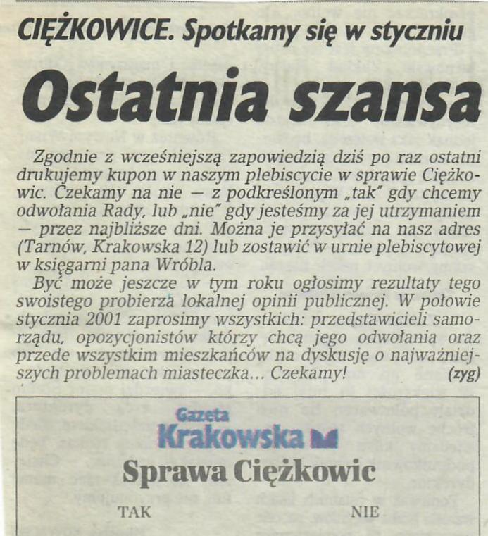 Gazeta Krakowska ( Tarnowska), Nr. 296, Str. 1, 20.12.2000 r.