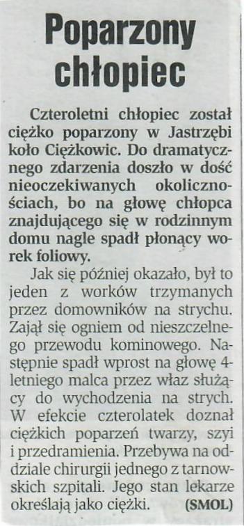 13 marca 200215 marca 2002 13 marca 2002 Poparzony chłopiec, Dziennik Polski ( Tarnowski ), Nr. 61, Str. 1, 13.03.2002 r. Udostępnij0 Powiązane wpisy20 stycznia 2024Czytaj dalej2 sierpnia 2023Czytaj dalej2 sierpnia 2023Czytaj dalej21 lipca 2023Czytaj dalej21 maja 2022Czytaj dalej Dodaj komentarz Anuluj pisanie odpowiedziTwój adres e-mail nie zostanie opublikowany. Wymagane pola są oznaczone *Komentarz * Nazwa * Adres e-mail * Witryna internetowa Zapamiętaj moje dane w tej przeglądarce podczas pisania kolejnych komentarzy. Δ