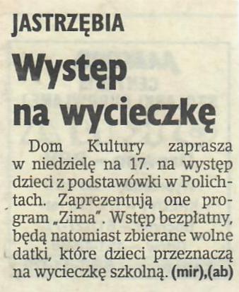31 stycznia 20021 lutego 2002 1 lutego 2002 Występ na wycieczkę Gazeta Krakowska ( Tarnowska ), Nr. 27, Str. 4, 01.02.2002 r. Udostępnij0 Powiązane wpisy20 stycznia 2024Czytaj dalej2 sierpnia 2023Czytaj dalej2 sierpnia 2023Czytaj dalej21 lipca 2023Czytaj dalej21 maja 2022Czytaj dalej Dodaj komentarz Anuluj pisanie odpowiedziTwój adres e-mail nie zostanie opublikowany. Wymagane pola są oznaczone *Komentarz * Nazwa * Adres e-mail * Witryna internetowa Zapamiętaj moje dane w tej przeglądarce podczas pisania kolejnych komentarzy. Δ