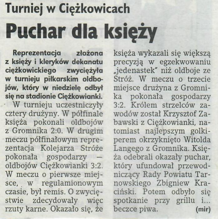 18 września 200324 września 2003 23 września 2003 Puchar dla księży Gazeta Krakowska ( Tarnowska ), Nr. 222, Str. 2, 23.09.2003 r. Udostępnij0 Powiązane wpisy20 stycznia 2024Czytaj dalej2 sierpnia 2023Czytaj dalej2 sierpnia 2023Czytaj dalej21 lipca 2023Czytaj dalej21 maja 2022Czytaj dalej Dodaj komentarz Anuluj pisanie odpowiedziTwój adres e-mail nie zostanie opublikowany. Wymagane pola są oznaczone *Komentarz * Nazwa * Adres e-mail * Witryna internetowa Zapamiętaj moje dane w tej przeglądarce podczas pisania kolejnych komentarzy. Δ