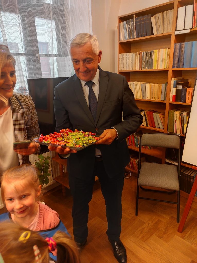 Na zaproszenie naszej Biblioteki,11 maja w ramach odchodów trwającego „Tygodnia Bibliotek”, udział w akcji wzięli: Burmistrz p. Stanisław Kuropatwa i Wiceprzewodniczący Rady Gminy p. Marek Gut, którzy wybrane bajki czytali dla dzieci z Niepublicznego Przedszkola „Uśmiech Dziecka”.