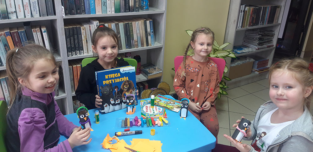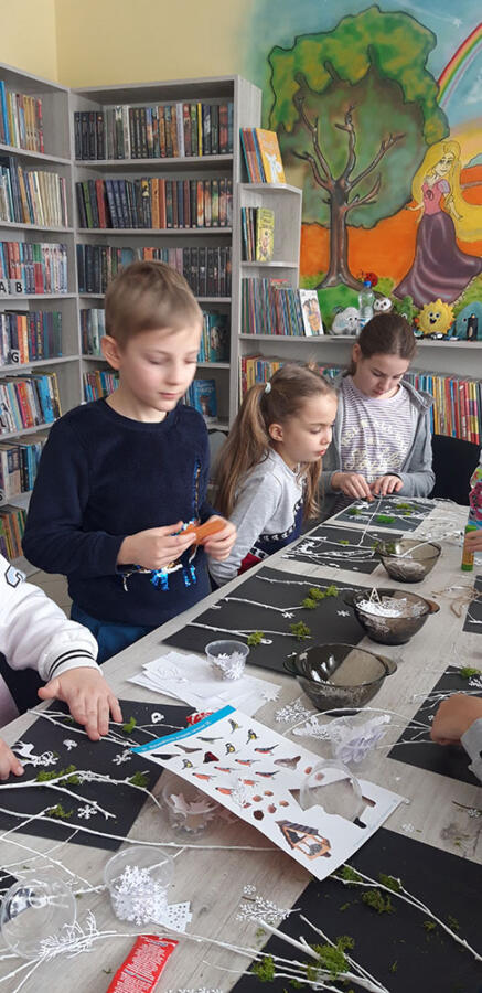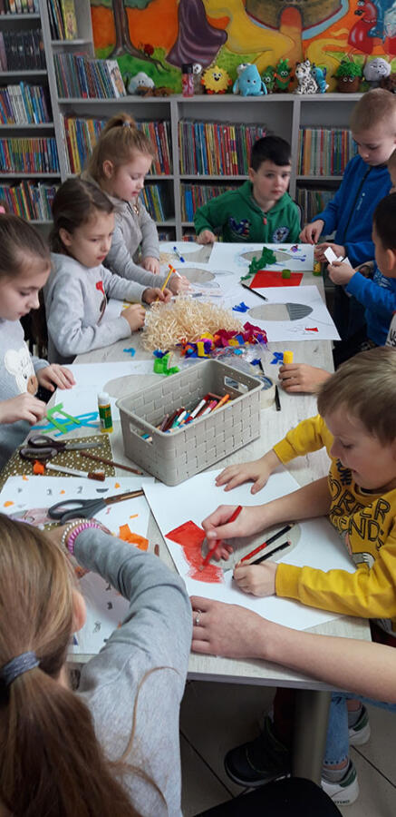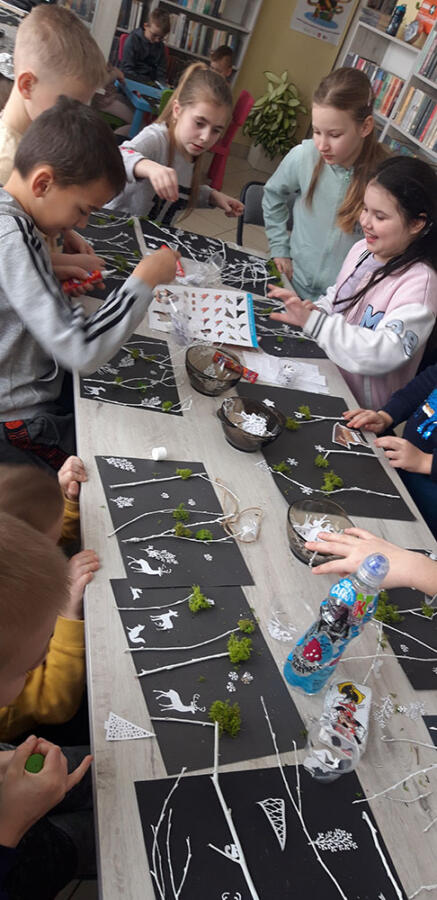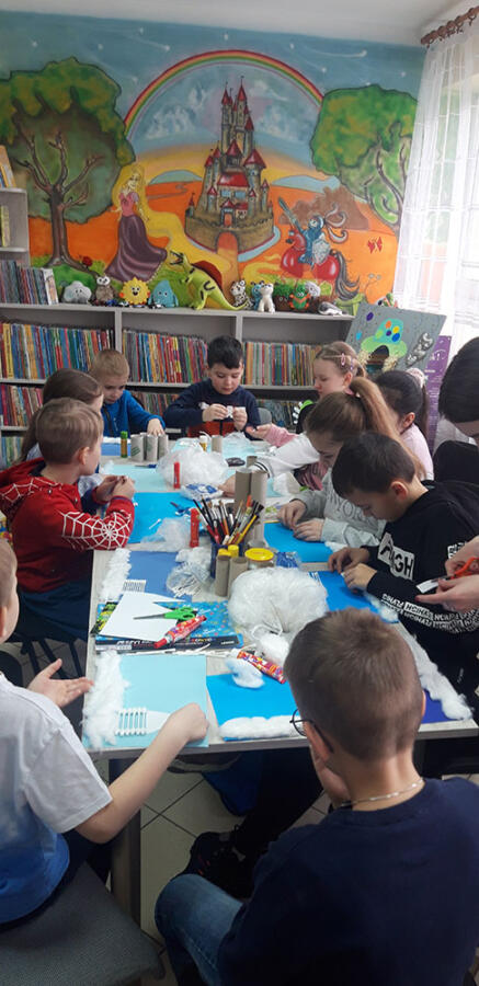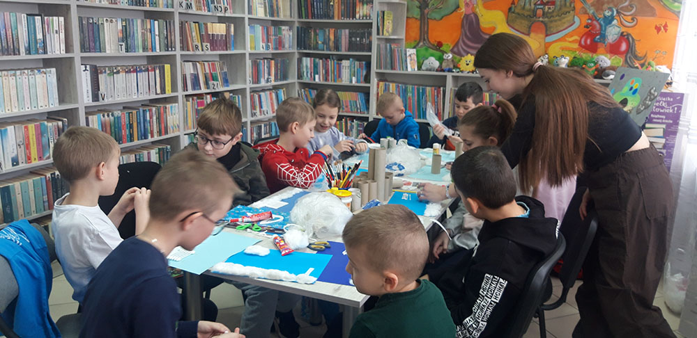 10 lutego 2023„Ferie w bibliotece” to coroczny, zimowy cykl zajęć dla najmłodszych. W tym roku z przygotowanej oferty skorzystało 63 dzieci. Zajęcia łączyły naukę i zabawę, rozwijały wyobraźnię i zdolności plastyczne. Niezmiennie towarzyszyła nam książka, tym razem była to: „Zaczarowana zagroda”, „Księga przyjaciół” i książki o zwierzętach, z których najmłodsi dowiedzieli się wiele ciekawostek m.in. jak dokarmiać zwierzęta zimą. Podczas zajęć, uczestnicy wykazywali się pomysłowością i zaangażowaniem. Było artystycznie, śmiesznie i kolorowo.