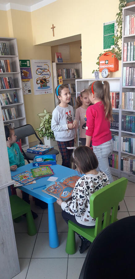 Dziękuję dzieciom za aktywny udział w zajęciach, wspaniałą atmosferę i zabawę, oraz jak zwykle zachęcam do częstego odwiedzania biblioteki.