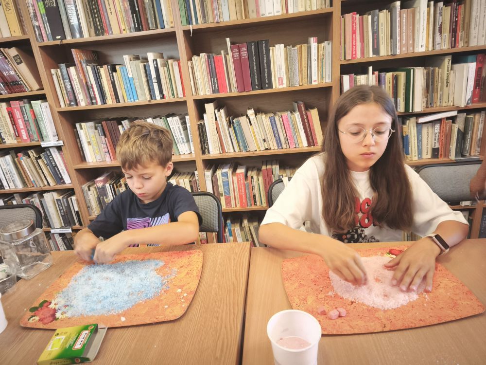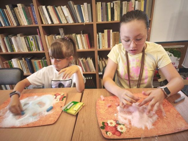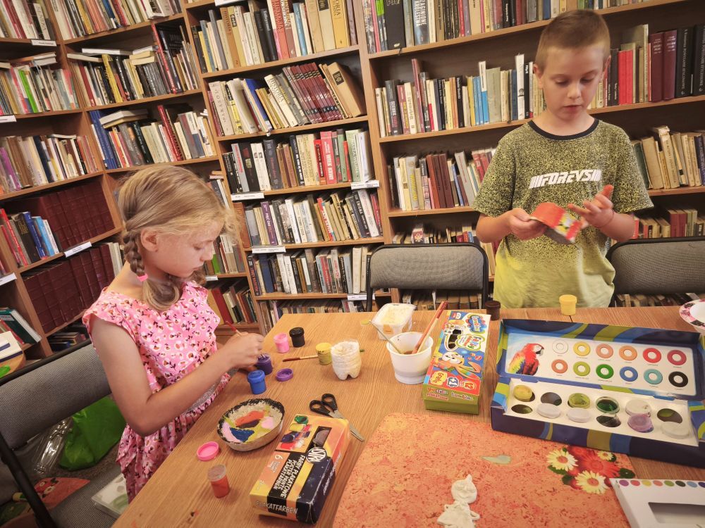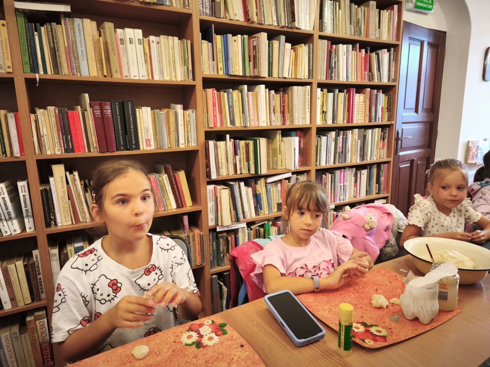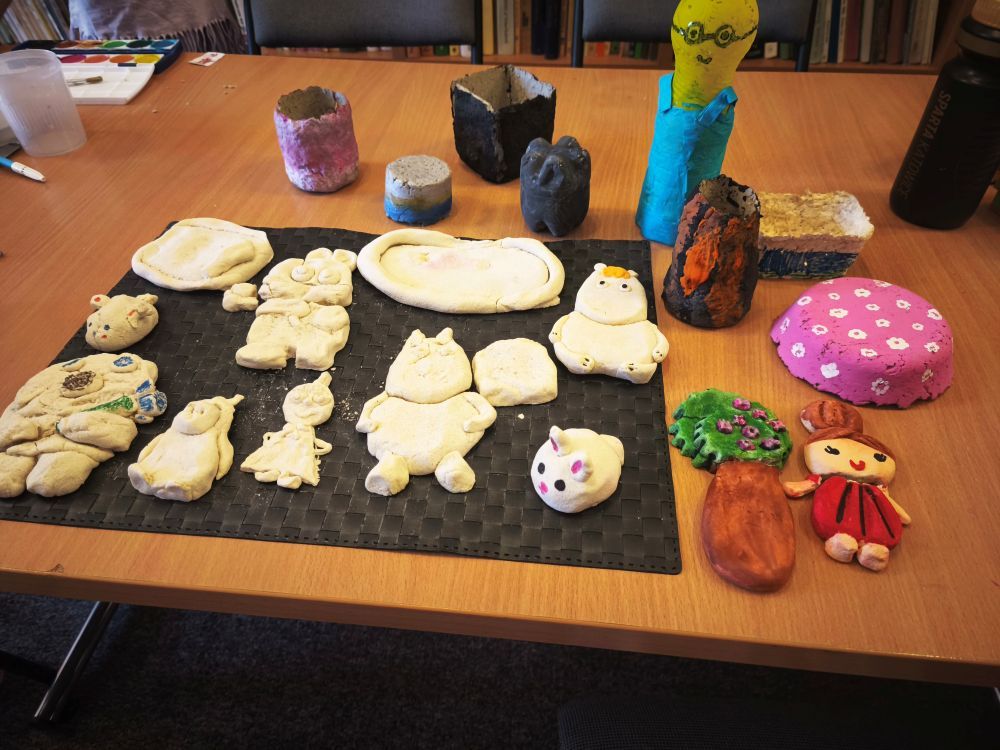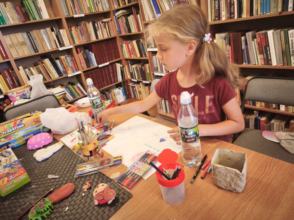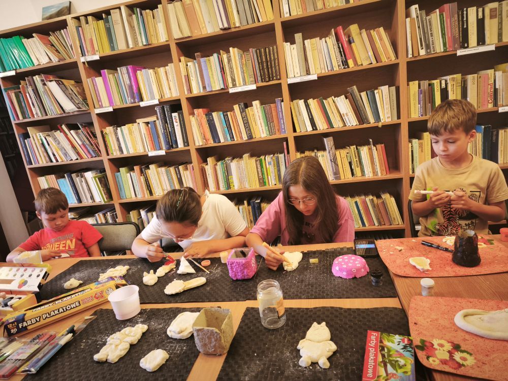 Podczas spotkań powstały kolorowe motyle i ptaszki, papierowe wakacyjne kapelusze, zabawne potworki z włóczki i plastikowych butelek, a także rodzinka Muminków z masy plastycznej. Uczestnicy tworzyli również prace z masy papierowej, malowali na kamieniach postacie z bajek i zwierzęta, a także eksperymentowali z malowaniem sznurkiem, solą i klejem.