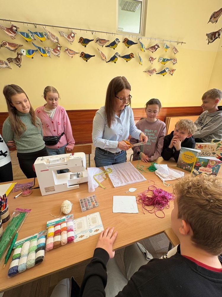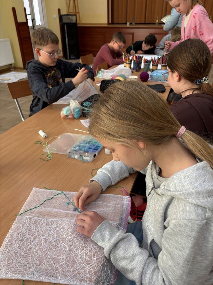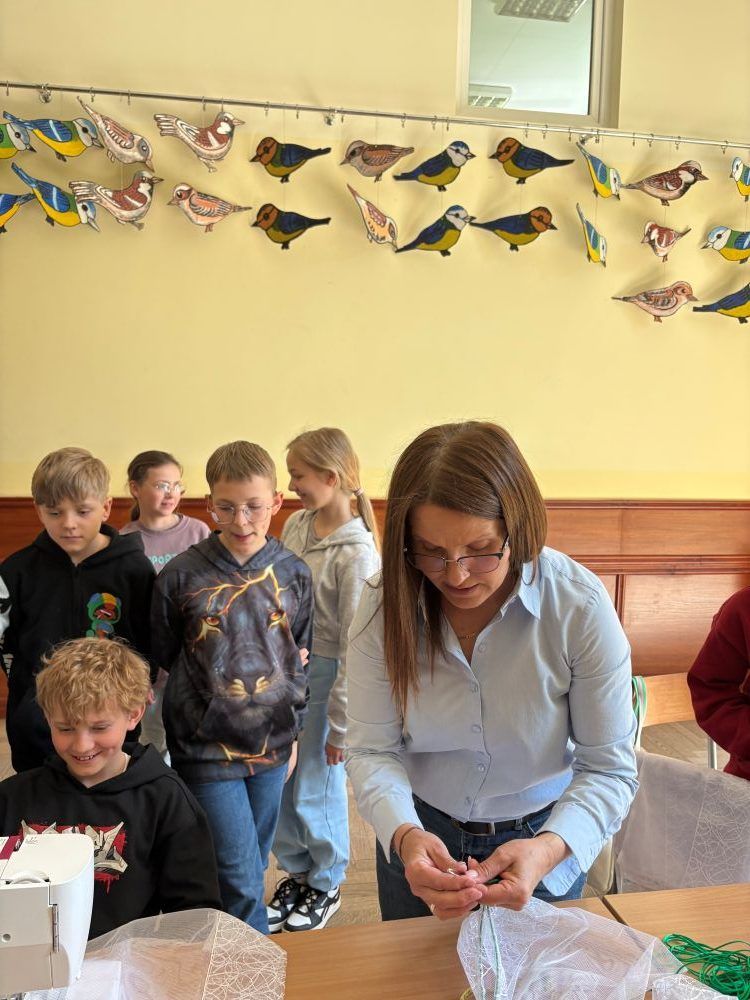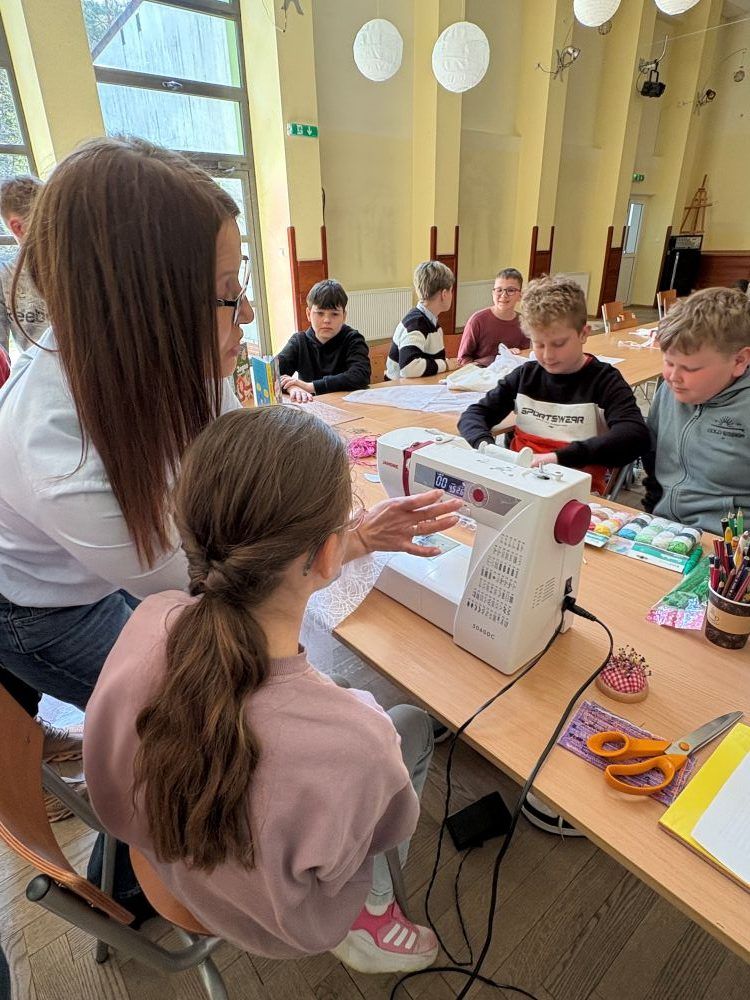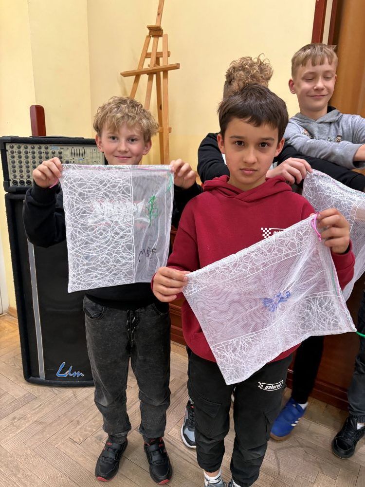 Część praktyczna zajęć odbyła się w duchu idei recyklingu ♻️. Uczestnicy samodzielnie szyli ekoworeczki z firanek, które mogą służyć m.in. do przechowywania owoców i warzyw 🍎🍐 Dzięki temu dzieci mogły przekonać się, że przedmiotom pozornie niepotrzebnym można nadać nowe życie. Każdy woreczek został ozdobiony według własnego pomysłu, co sprawiło, że wszystkie prace były wyjątkowe i niepowtarzalne. Warsztaty pokazały, że działania ekologiczne mogą być nie tylko pożyteczne, ale również kreatywne i dawać wiele radości 😊