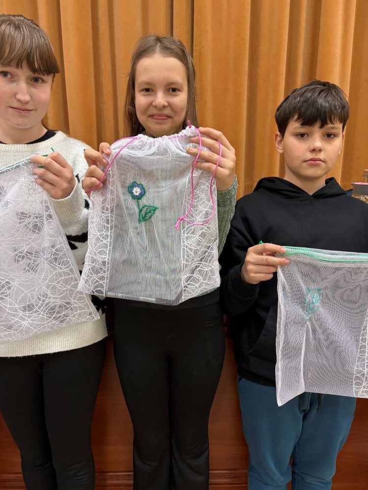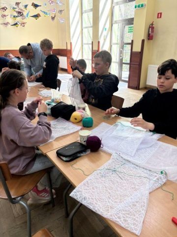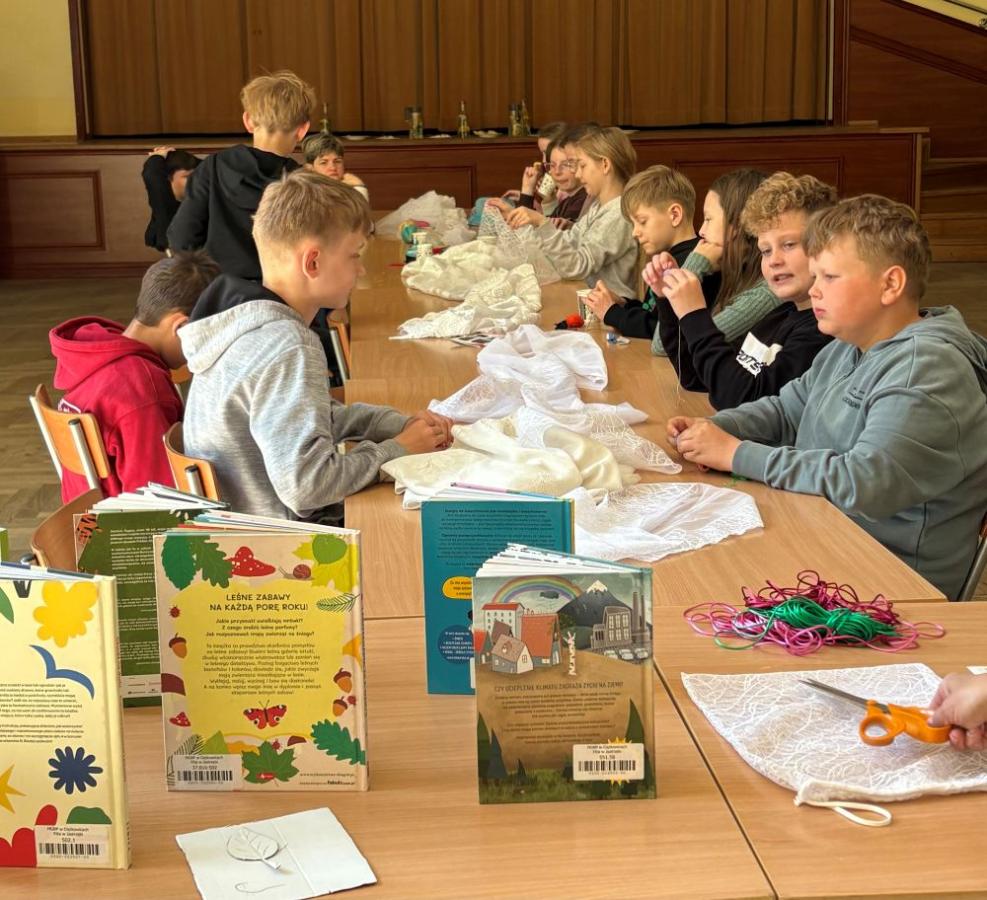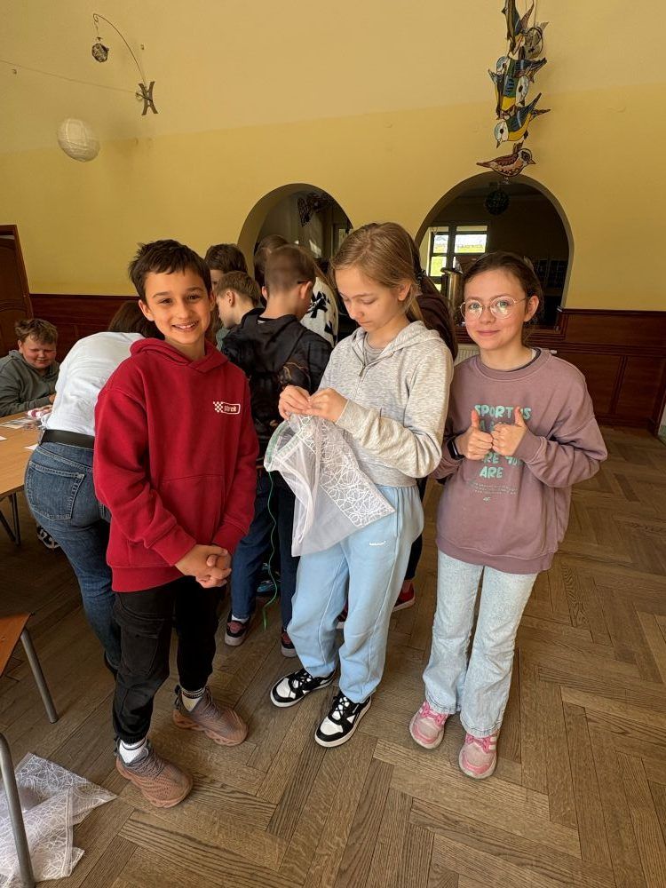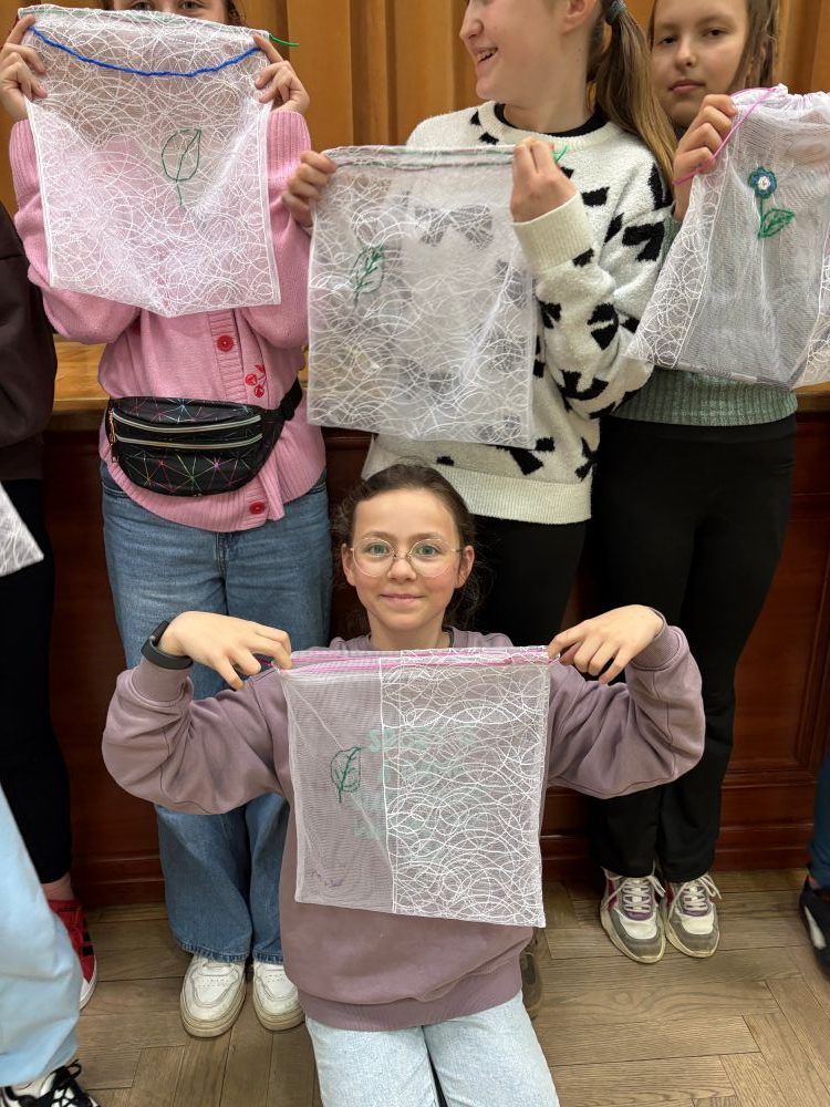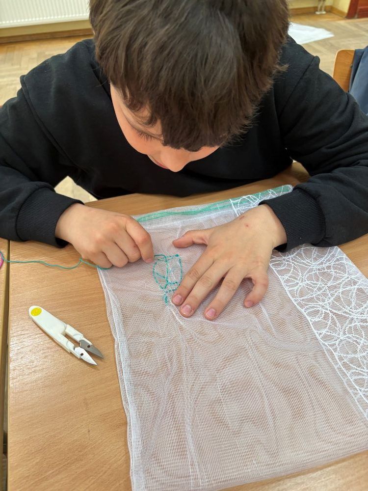 Część praktyczna zajęć odbyła się w duchu idei recyklingu ♻️. Uczestnicy samodzielnie szyli ekoworeczki z firanek, które mogą służyć m.in. do przechowywania owoców i warzyw 🍎🍐 Dzięki temu dzieci mogły przekonać się, że przedmiotom pozornie niepotrzebnym można nadać nowe życie. Każdy woreczek został ozdobiony według własnego pomysłu, co sprawiło, że wszystkie prace były wyjątkowe i niepowtarzalne. Warsztaty pokazały, że działania ekologiczne mogą być nie tylko pożyteczne, ale również kreatywne i dawać wiele radości 😊