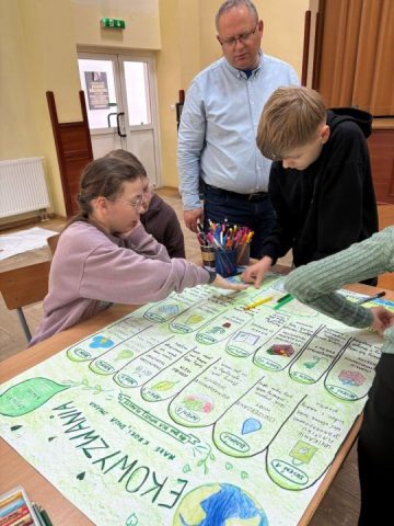 Wspólnymi siłami powstał również plakat promujący ochronę środowiska 🪧, który będzie przypominał o tym, jak ważne są codzienne wybory i troska o naszą planetę 🌎