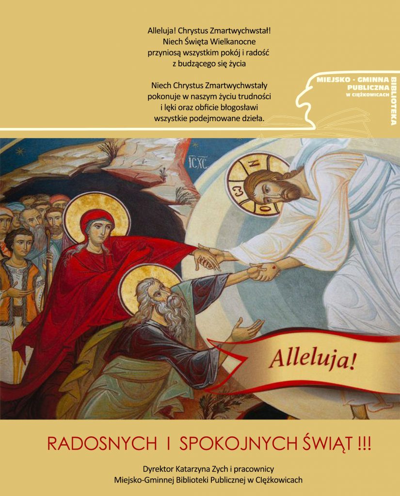 Biblioteka Jastrzębia- dyplomy dla małych czytelników13 kwietnia 2022Światowy Dzień Książki i Praw Autorskich19 kwietnia 2022 Z NAJLEPSZYMI ŻYCZENIAMI! 14 kwietnia 2022 Udostępnij0 Powiązane wpisy2 kwietnia 2026Radosnych Świąt Wielkanocnych!Czytaj dalej23 marca 2026Warsztaty przyrodnicze w ramach projektu „Biblioteki pełne Dobrej Energii”📚🌿🎨Czytaj dalej18 marca 2026„W świetle i cieniu natury” – wystawa prac Magdaleny MierzwyCzytaj dalej18 marca 2026DKK Ciężkowice – „Najważniejsze to przeżyć” Czytaj dalej16 marca 2026DKK Jastrzębia – „Paskudna historia”Czytaj dalej Dodaj komentarz Anuluj pisanie odpowiedziTwój adres e-mail nie zostanie opublikowany. Wymagane pola są oznaczone *Komentarz * Nazwa * Adres e-mail * Witryna internetowa Zapamiętaj moje dane w tej przeglądarce podczas pisania kolejnych komentarzy. Δ
