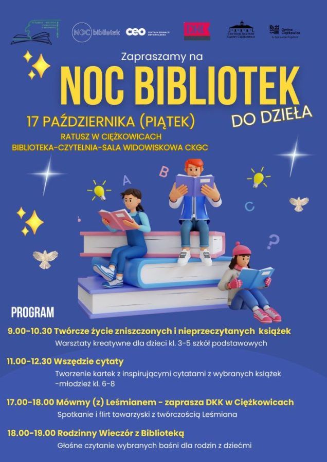 21 października 2025Dołączamy do 11. wydania ogólnopolskiej Nocy Bibliotek i zapraszamy w sposób szczególny w nasze progi 17 października!